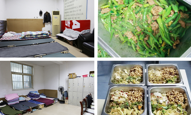 駐廠員工共克時艱的決心感染著每位得潤人。為了讓他們無后顧之憂,公司領導貼心準備了床鋪、棉被等物資。因防疫管控原因,供應鏈受阻。為使員工菜品種類更加豐富,后勤保障人員除了就近搶購蔬菜外,還積極聯系多種渠道配送,用最大努力保證食材的新鮮多樣和安全健康。