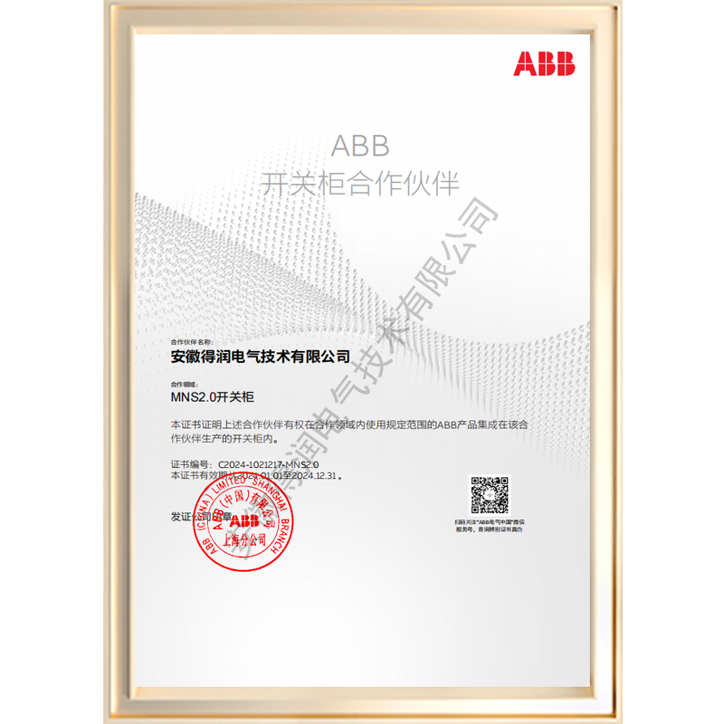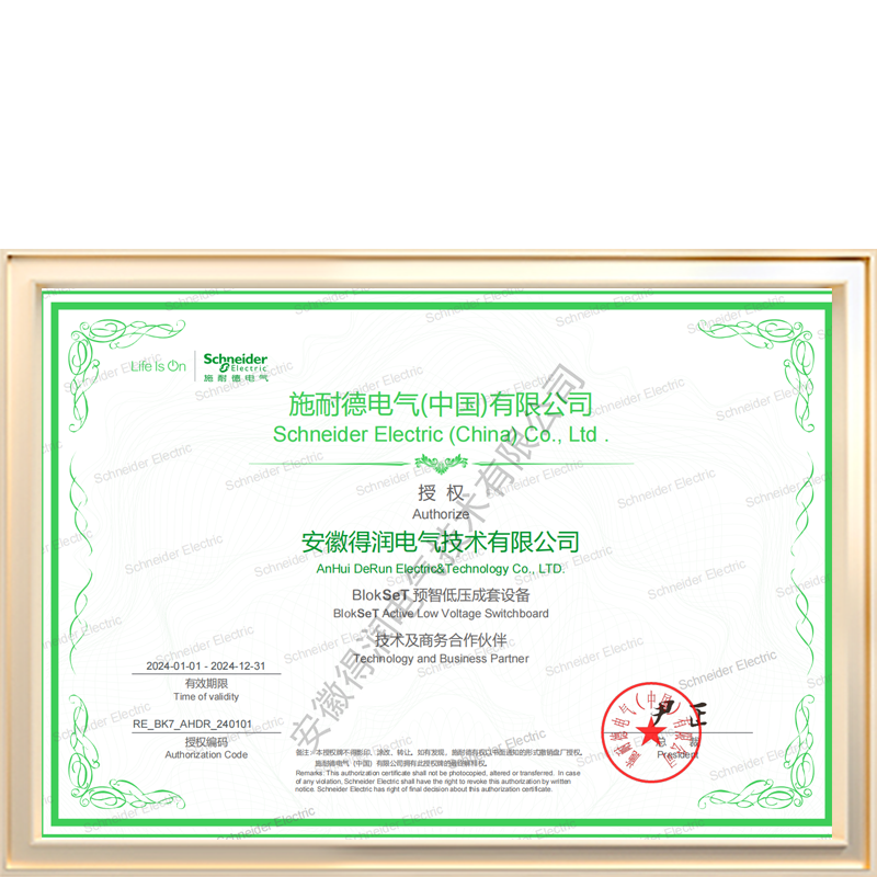 得潤電氣是ABB公司金牌合作伙伴、運動控制系統(tǒng)集成商、傳動授權(quán)服務(wù)中心、中壓開關(guān)柜UniSafe指定生產(chǎn)商、低壓開關(guān)柜MNS 2.0及MNS-E動力箱聯(lián)盟盤廠、低壓全系列元器件直供商。是Schneider公司MVnex中壓智能開關(guān)柜、BlokSeT低壓柜和Prisma-E動力箱授權(quán)生產(chǎn)商。是Siemens 公司電力監(jiān)測、控制保護的系統(tǒng)產(chǎn)品及服務(wù)的主要供應(yīng)商。